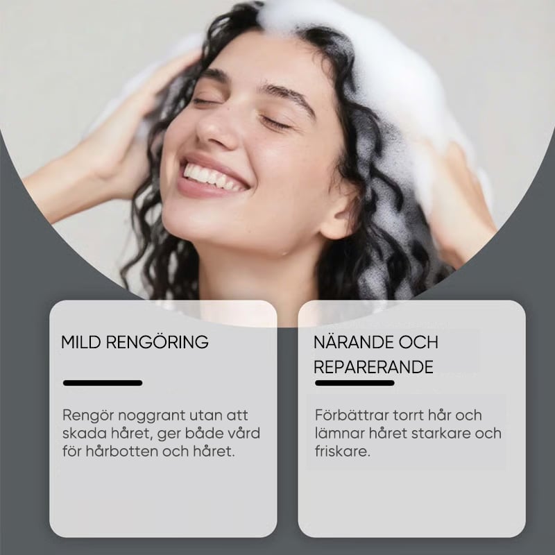 - 💎 Mild men effektiv formula: Skapat med en balanserad blandning av milda rengöringsämnen och närande växtextrakt. Schampot är effektivt mot orenheter men skonsamt mot hårbotten. Fri från sulfater och parabener, bevarar hårets naturliga fuktbarriär samtidigt som smuts och överflödig olja avlägsnas – perfekt för daglig användning eller känslig hårbotten.