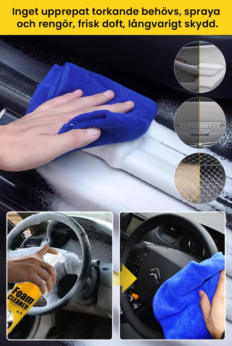 Rengöringseffekten är fantastisk och sprayen är väldigt bekväm. Efter användning är både insidan och utsidan av min bil ren och fräsch. Värt att köpa!