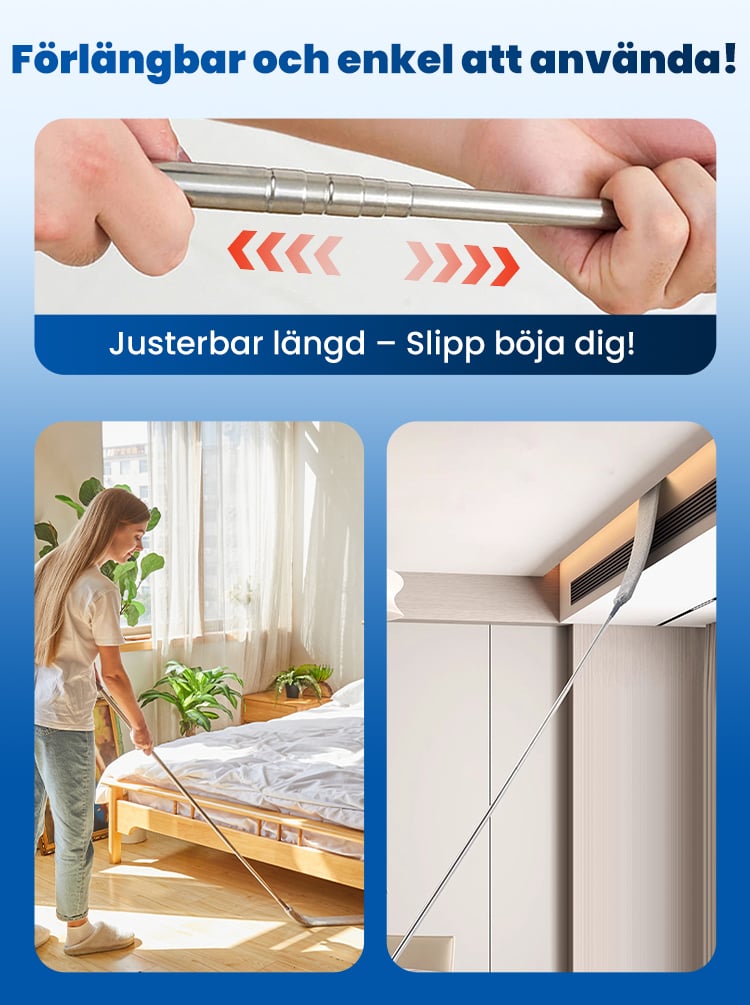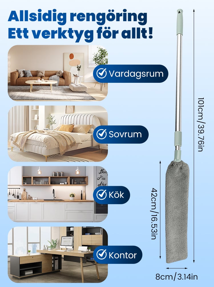 Det här är ett måste för alla som hatar att städa trånga utrymmen. Den är väldigt lätt att använda, och den platta borsthåvudet passar perfekt i smala springor. Jag har redan rekommenderat den till mina vänner!