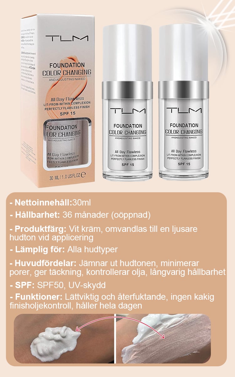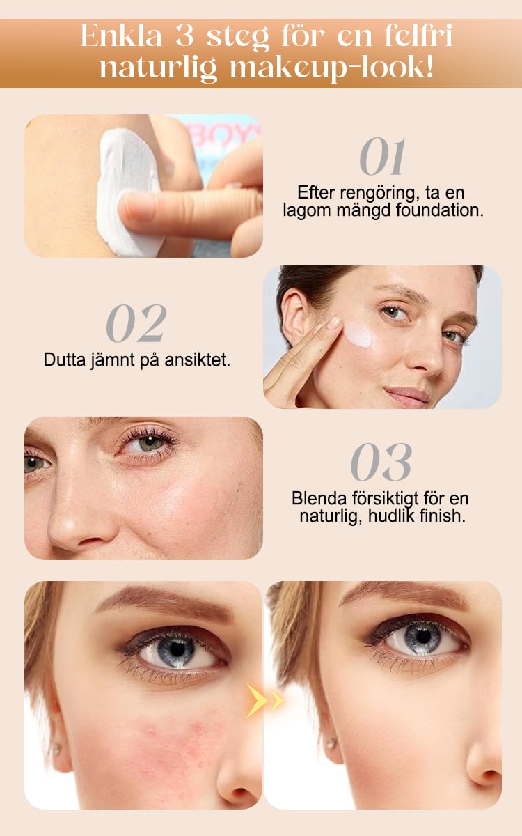 Superlätt att applicera, ger en naturlig och långvarig effekt, och min hud ser så jämn ut.