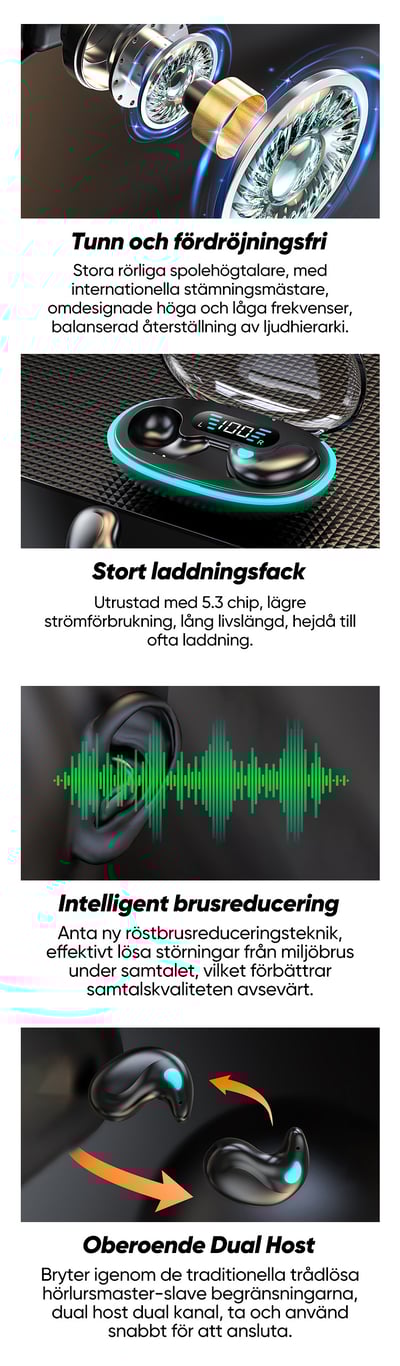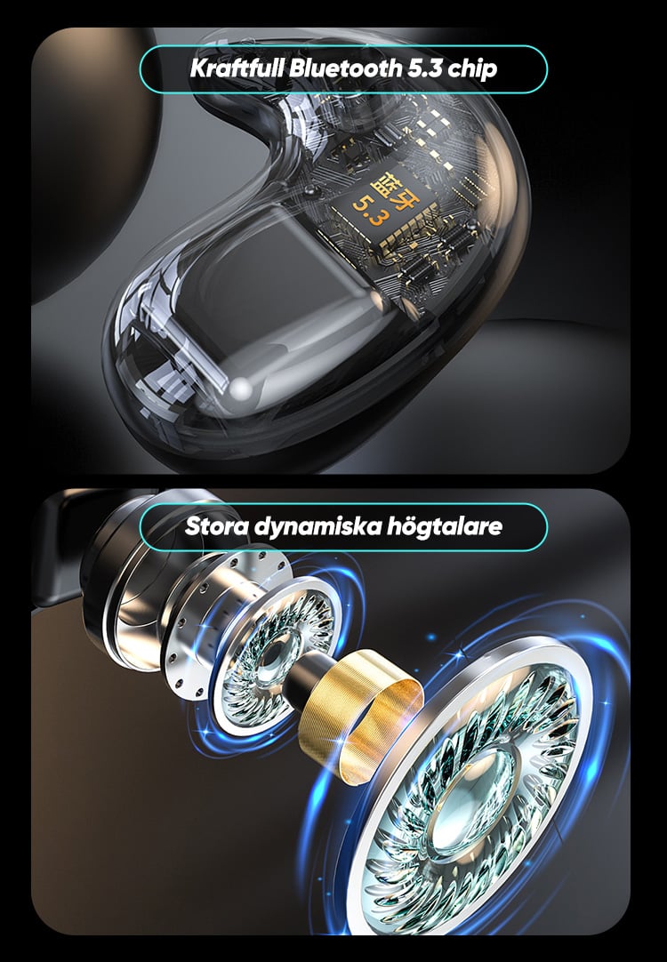 Fantastisk ljudkvalitet! Det balanserade ljudet med klara höga, mellan- och låga toner gör musik och samtal till en absolut njutning.