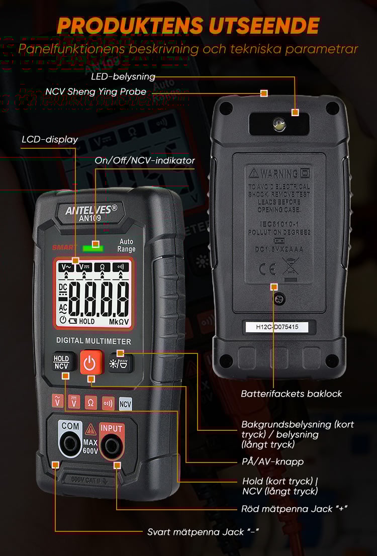 Denna multimeter är fantastisk! Den är enkel att använda, och displayen är tydlig även i svagt ljus. Mycket exakta mätningar, och den är byggd för att hålla!