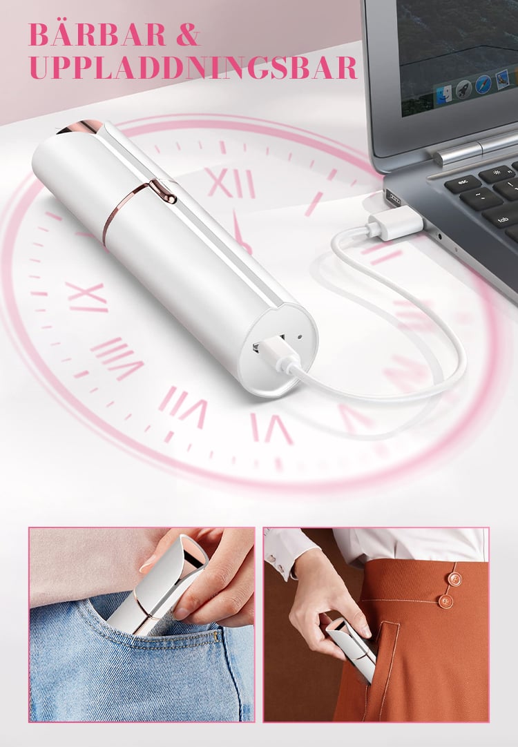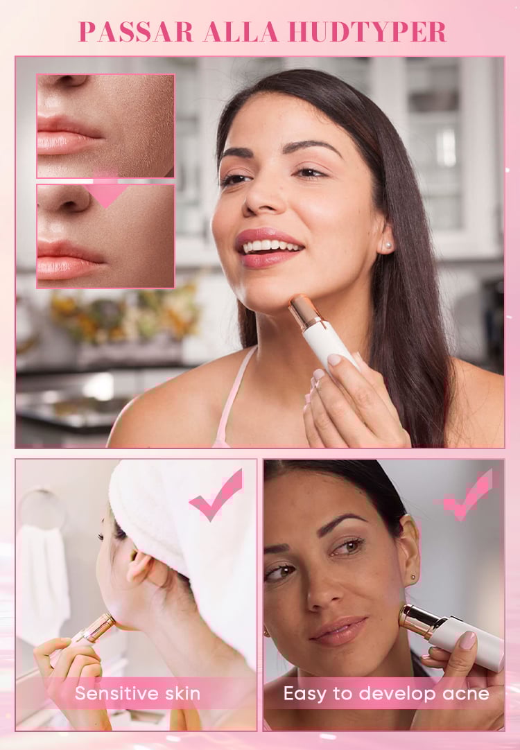 Jag var skeptisk först, men wow, det fungerar verkligen! Tar bort ansiktshår snabbt och smärtfritt. Jag älskar det läppstiftsliknande formatet – så lätt att slänga ner i väskan. Absolut mitt nya favoritverktyg!