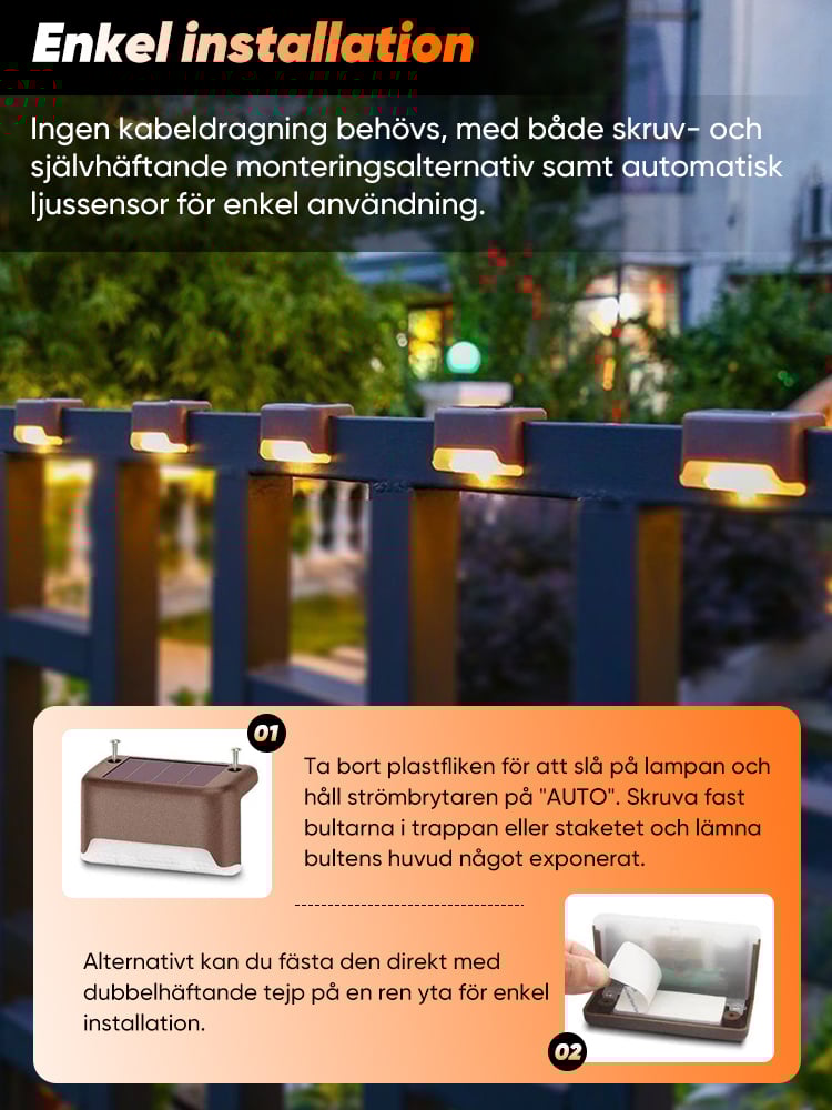 Jag älskar att dessa solcellslampor automatiskt tänds på natten. Fantastisk energibesparing!