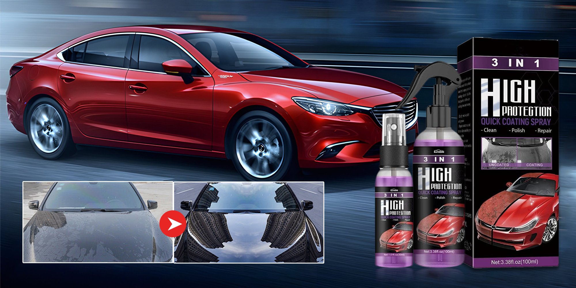 Det tunna skyddslagret på din bil är inte så starkt som du tror. Varje gång du använder starka rengöringsmedel eller grova svampar skapas mikroskopiska repor som med tiden gör lacken matt. 3-i-1 High Protection Quick Car Coating Spray rengör skonsamt med avancerad nanoteknik – och bevarar lackens skick vid varje användning.