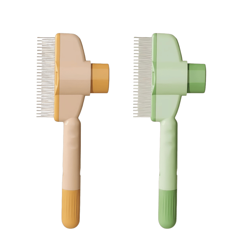 🐕Rengöring med en knapptryckning Efter borstning, tryck på självrengöringsknappen. Borsten frigör pälsen automatiskt – enkelt och tidsbesparande.
